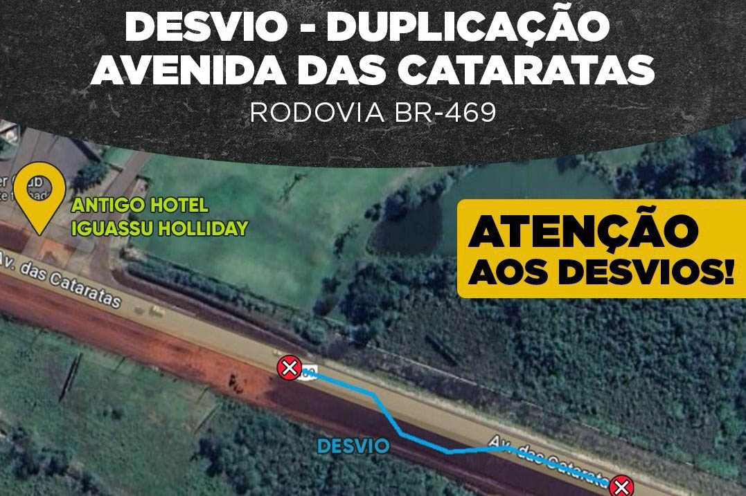 O Departamento de Estradas de Rodagem do Paraná (DER/PR) informa que a partir da segunda-feira (23) terá início um novo desvio provisório na BR-469 em Foz de Iguaçu, região Oeste, parte da obra de duplicação da rodovia federal.