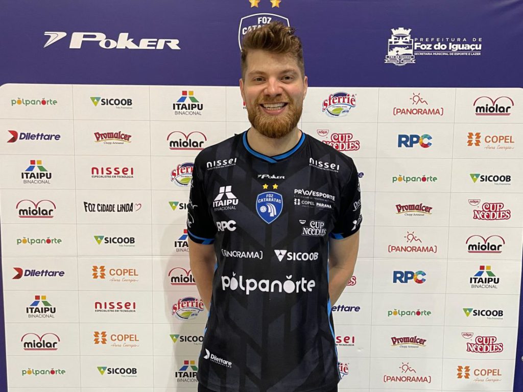 Rodrigo Trentin chega para sua terceira temporada no Azulão das 3 Fronteiras. O pivô de 30 anos é o maior artilheiro da história do Foz Cataratas Poker Futsal com 74 gols em 104 jogos.