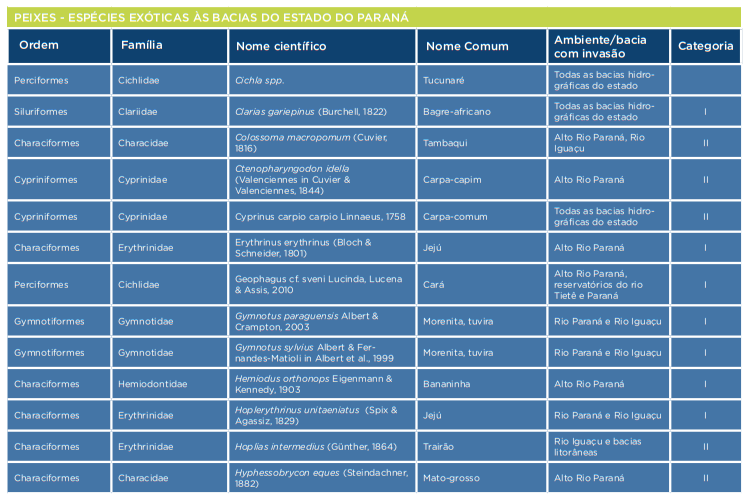 As outras espécies consideradas exóticas no Paraná são: