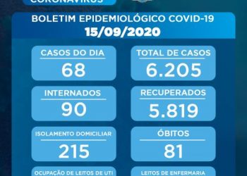 A Vigilância Epidemiológica de Foz do Iguaçu confirma na data de hoje, 15/09/2020, 68 casos de Covid-19 (ontem foram 84), ...
