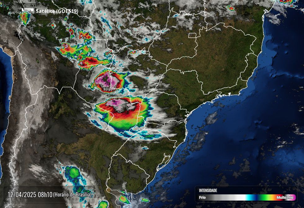Muita instabilidade sobre a região de Foz do Iguaçu neste sábado, conforme mostra foto do Simepar divulgada nesta manhã.