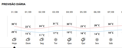 Quando à umidade do ar, a notícia não é boa: ficará abaixo dos 60%. Ontem, por exemplo, chegou a 35% à tarde e para hoje o previsto é de 42%.