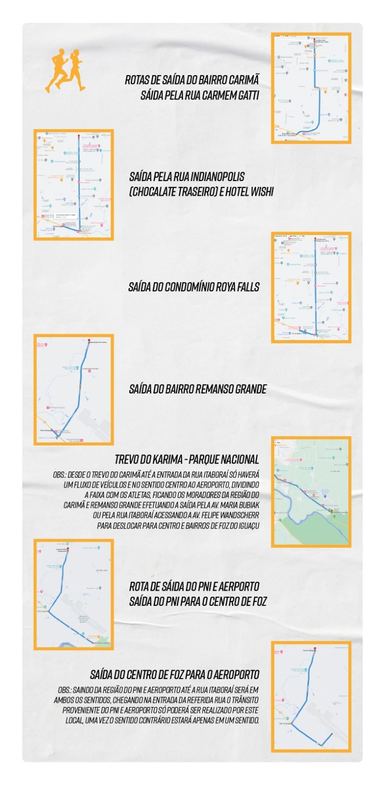 Durante a realização da prova, algumas avenidas de Foz do Iguaçu serão parcialmente interditadas para a segurança dos atletas: Av. Tancredo Neves, Av. Juscelino Kubitschek, Av. República Argentina, Av. Brasil, Av. Jorge Schimmelpfeng e a BR-469 (Av. das Cataratas).