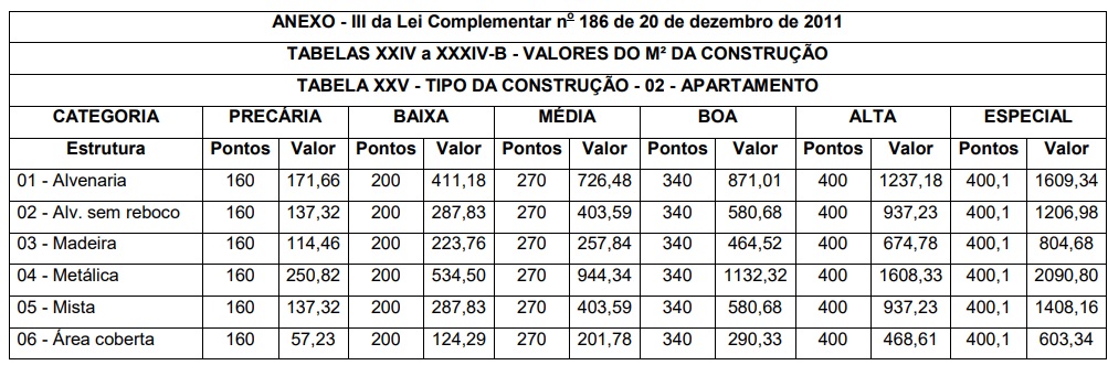 Confira nas tabelas abaixo o novo valor do metro quadrado dos principais imóveis de Foz: casa, apartamento e kitinet.