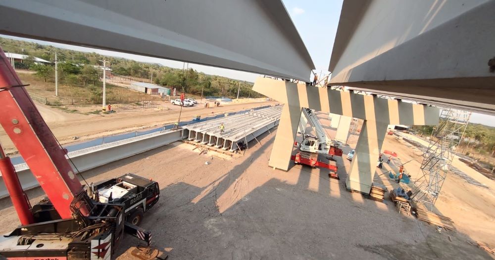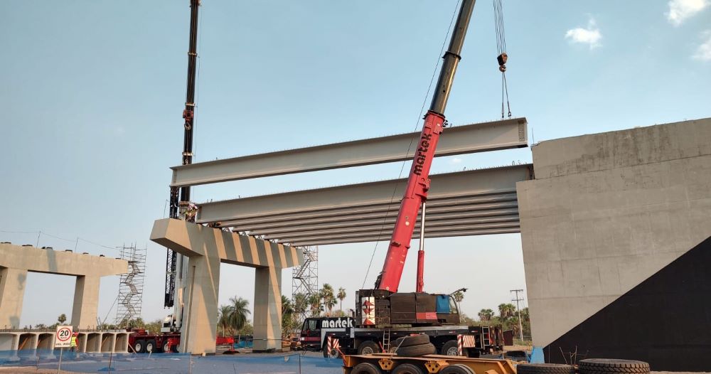 Na terça-feira, 17 de outubro, começaram os trabalhos de içamento e montagem das primeiras vigas longitudinais pré-fabricadas que farão parte da superestrutura do viaduto de acesso da futura Ponte Bioceânica, no lado paraguaio da obra.