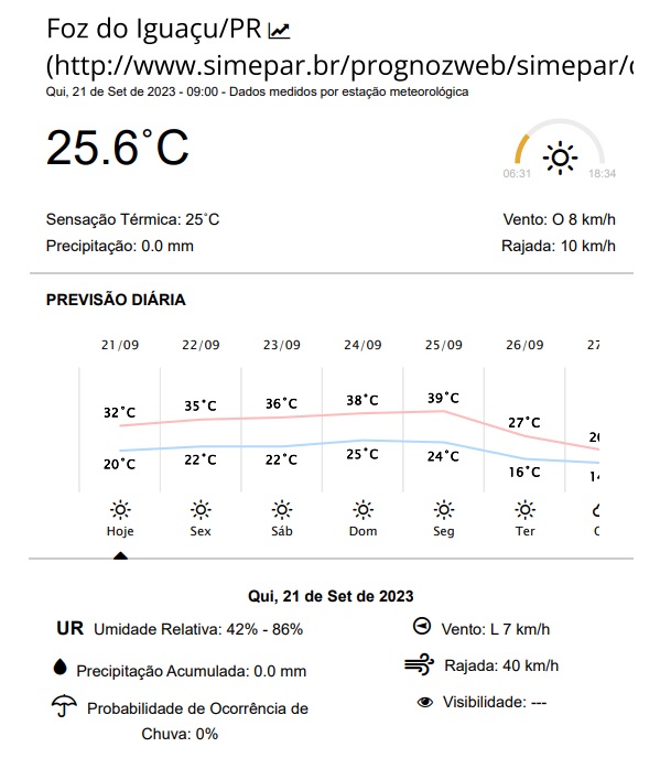 Antes, vale ressaltar que o Simepar é o único instituto de meteorologia que tem uma estação meteorológica em Foz do Iguaçu e, portanto, suas medições são coletadas com base em protocolos científicos mundiais.