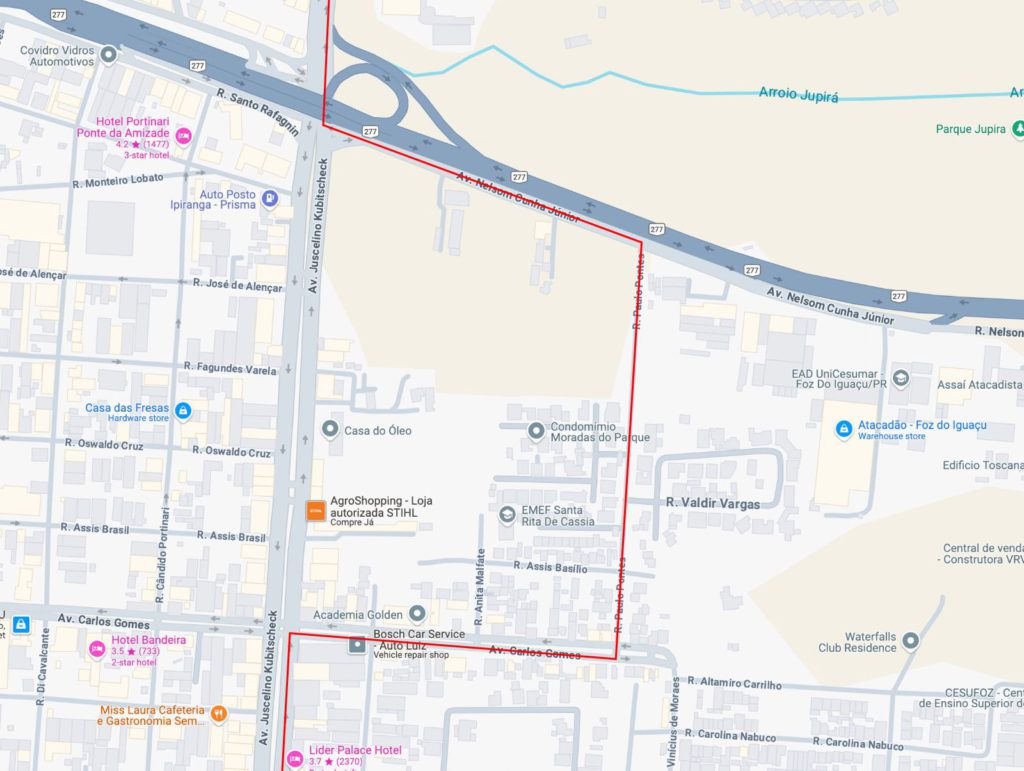 Para motoristas que precisam acessar a região norte, a orientação é subir pela Rua Carlos Gomes, virar à esquerda na Rua Paulo Pontes, seguir até a Rua Nelson da Cunha Júnior e virar à esquerda para acessar o viaduto, continuando em direção ao Paraguai ou à região norte.