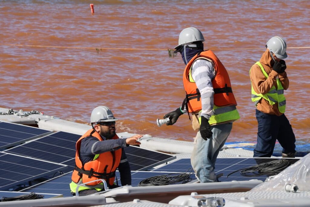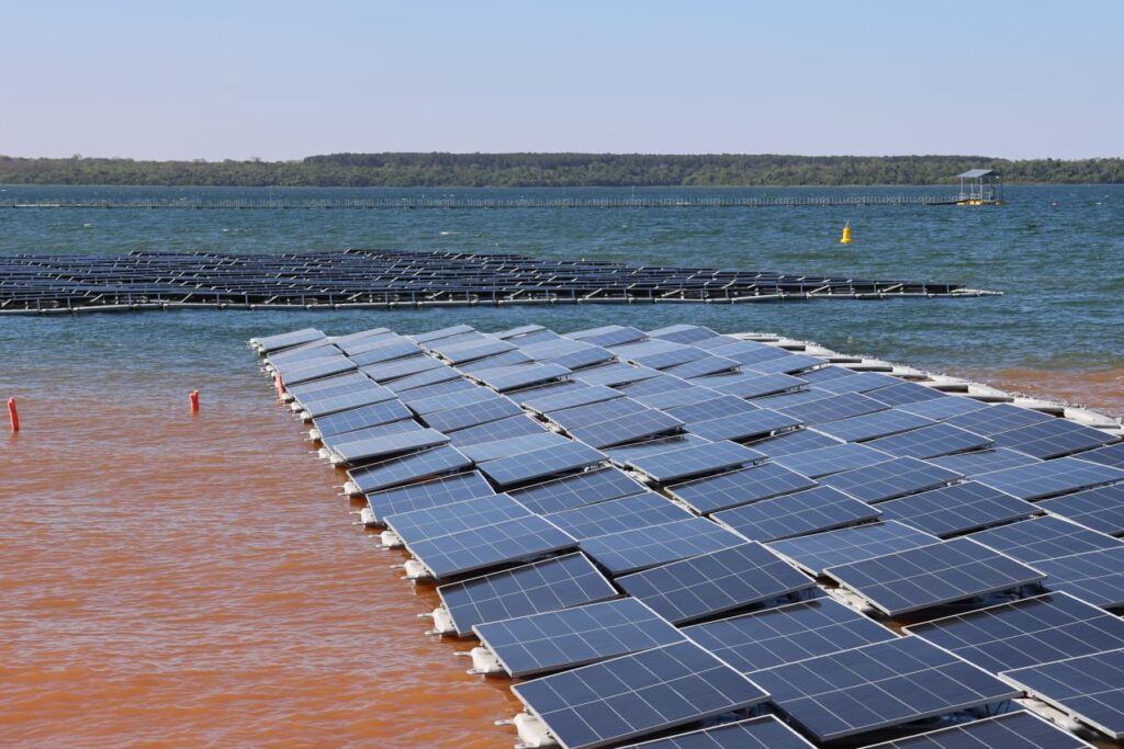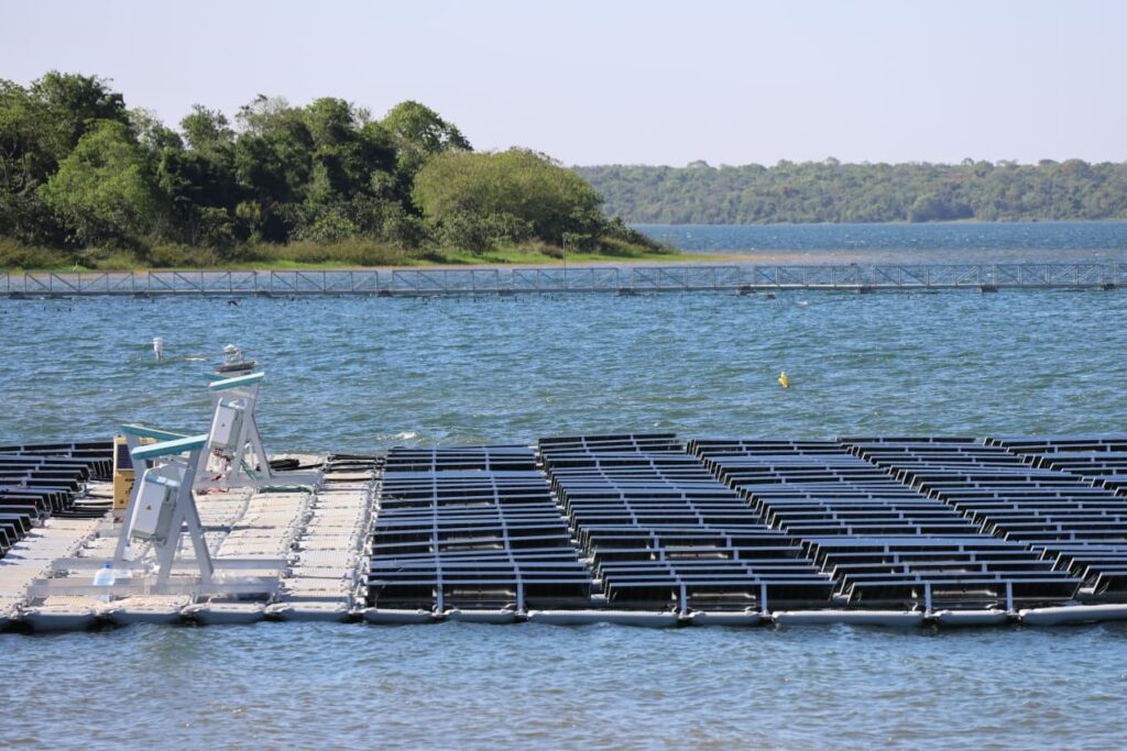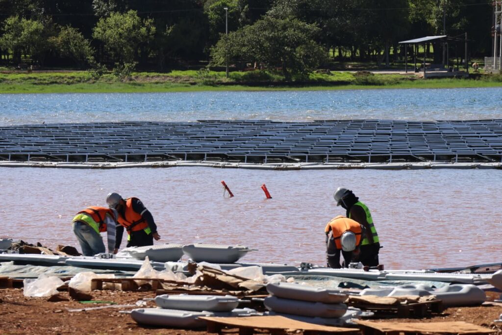 Foi concluída a instalação de 1.584 painéis solares bifaciais nos 4.199 flutuadores da futura Usina Solar Flutuante, localizada no reservatório da Usina Hidrelétrica de Itaipu (CHI), em Hernandarias, no Paraguai.