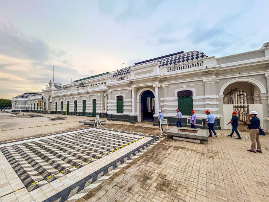 A praça e o pavilhão fazem parte do complexo do centenário Mercado São Brás, que está em estágio adiantado de restauração, com 85% da obra concluída. No pavilhão, os visitantes podem conhecer a exposição “Renascimento”, da artista Rosa Arraes.