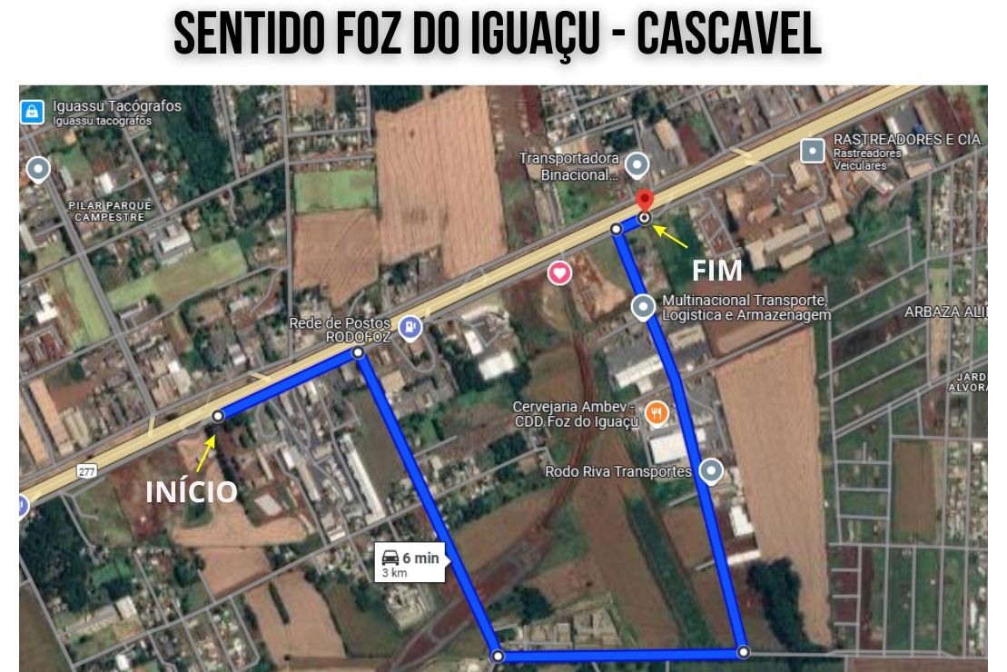 Para o sentido de tráfego Cascavel-Foz do Iguaçu o usuário deve entrar na Rua Silvano Gutierrez e seguir até a Avenida Gramado, virar na Avenida Dr. Luís Passos e chegar na Rua Silvio Sottomaior, acesso para a BR-277.