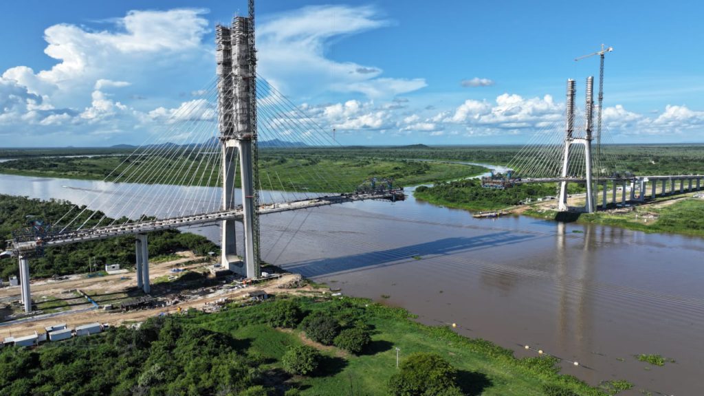 A construção da Ponte Bioceânica, uma das obras mais estratégicas da América do Sul, está muito próxima de um momento histórico. O trecho mais impressionante da estrutura, sobre o Rio Paraguai, já está quase concluído.