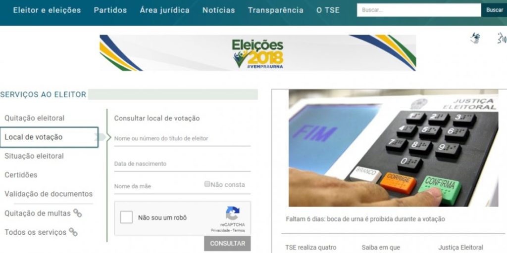 No site do Tribunal Superior Eleitoral (TSE), o eleitor pode fazer a consulta. A opção está na página principal. Basta inserir o número do título de eleitor.