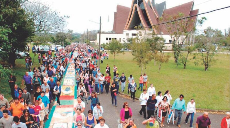 Feriado religioso, o dia de Corpus Christi será celebrado nesta quinta-feira (30), com missas, exposição de tapetes coloridos, procissões e mobilizações solidárias em Foz do Iguaçu. A previsão para a data é de frio, com mínima entre 8°C e 10°C, mas o clima gelado não deve intimidar os fiéis.