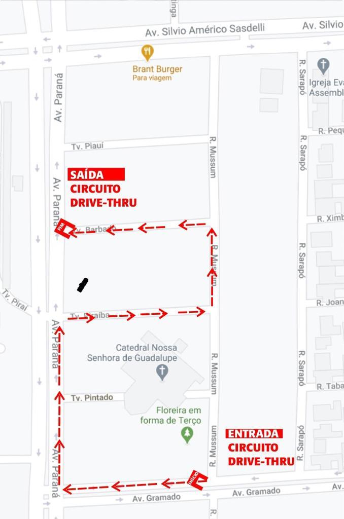 Veja o trajeto do drive-thru no mapa abaixo.