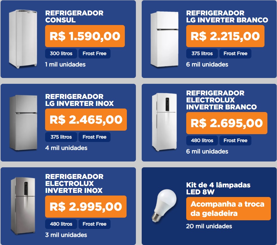 Confira os preços e as geladeiras disponíveis que fazem parte do programa