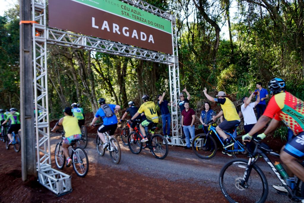 Um passeio ciclístico na manhã desse domingo (23) simbolizou a inauguração do terceiro trecho da Rota Beira Parque, entre Céu Azul e Santa Tereza do Oeste. Cerca de 800 ciclistas de vários municípios da região participaram do evento. Eles percorreram os 26 quilômetros da nova pista.