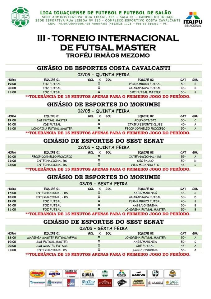 De 02 a 05 de maio Foz do Iguaçu sedia a maior competição de Futsal Master do Brasil.