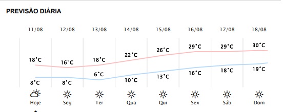 Pela previsão do Simepar, a partir de quarta-feira (14), as temperaturas voltam a subir, chegando a até 30 graus, no próxima fim de semana.