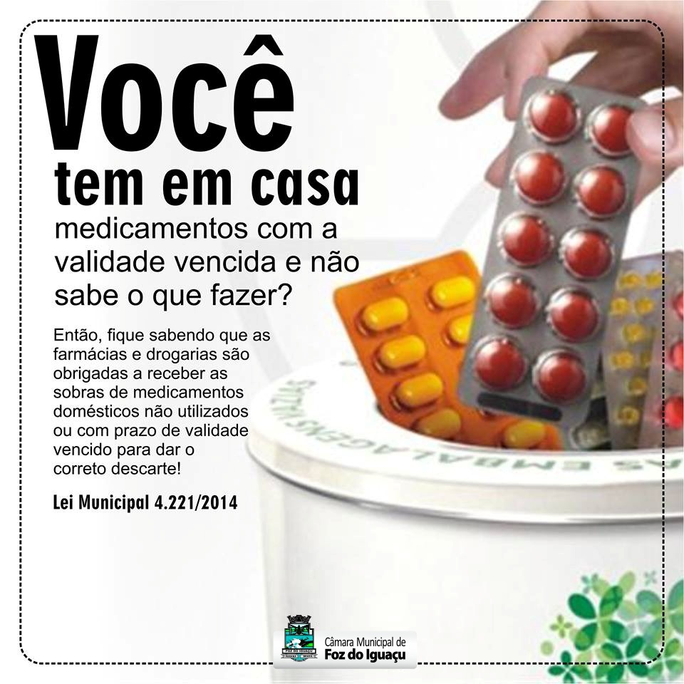 ? Fique sabendo que as farmácias e drogarias em Foz do Iguaçu são obrigadas a receber as sobras de medicamentos domésticos não utilizados ou com prazo de validade vencido para dar o correto descarte.